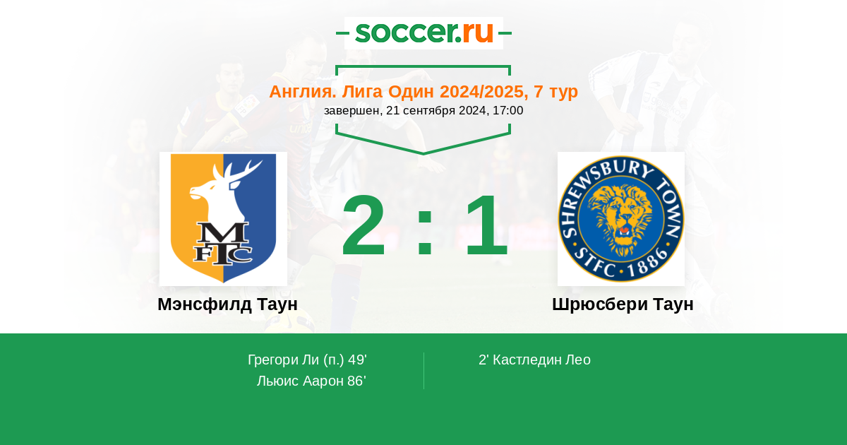 49' (1:1) Грегори Ли (19)