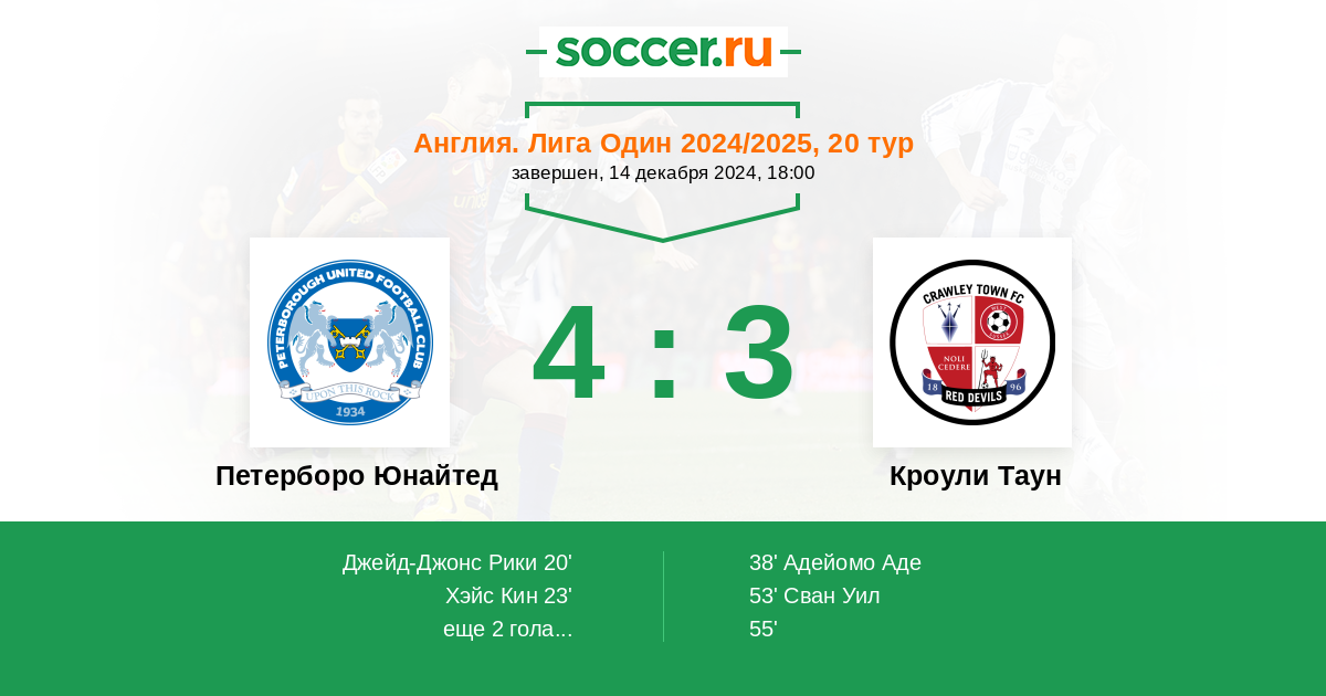 23' (2:0) Хэйс Кин (18) (Джейд-Джонс Рики (17))