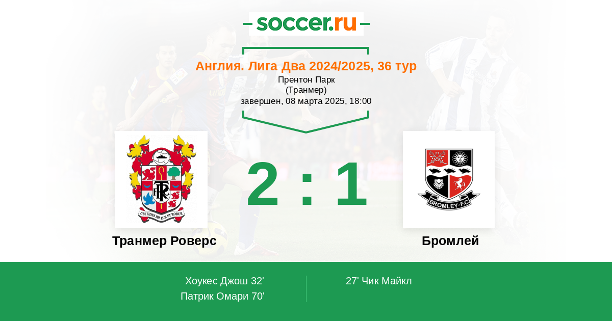 70' (2:1) Патрик Омари (30) (Хендри Реган (8))