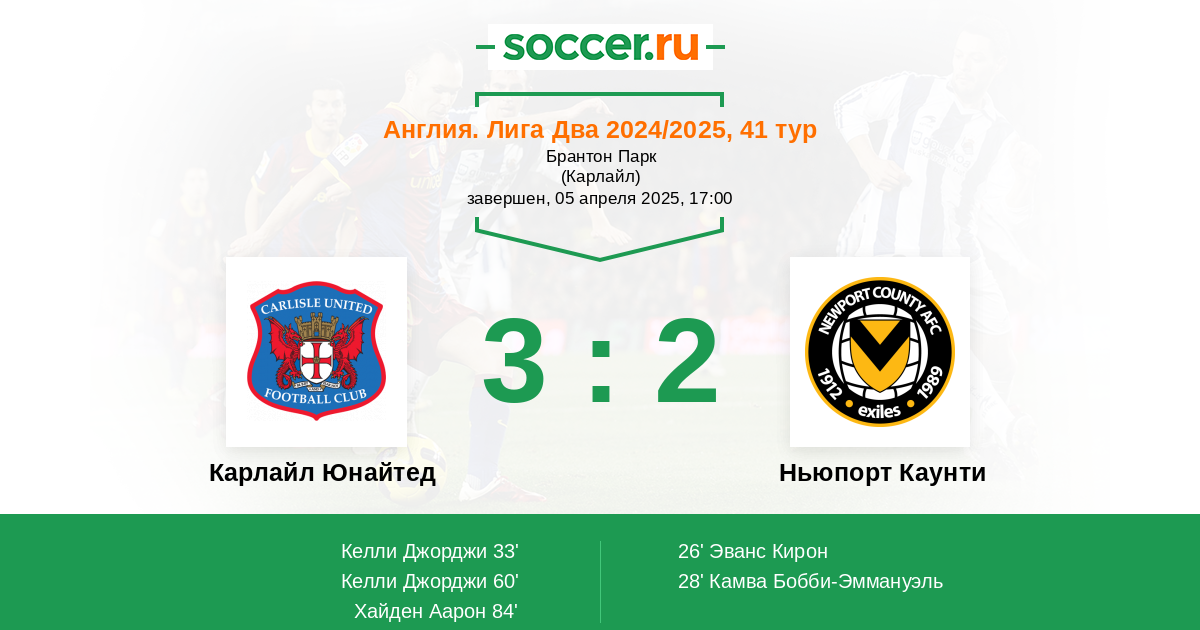 33' (1:2) Келли Джорджи (9) (Уирн Стефен (39))