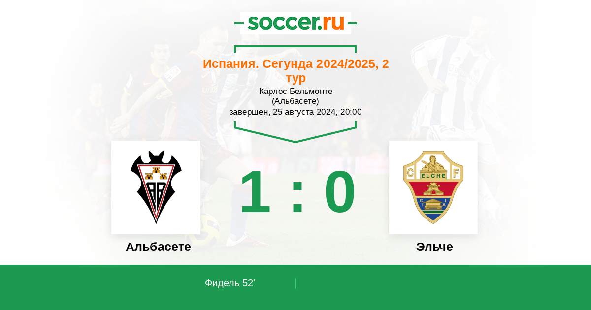 52' (1:0) Фидель (10) (Гарсия Хуанма (7))