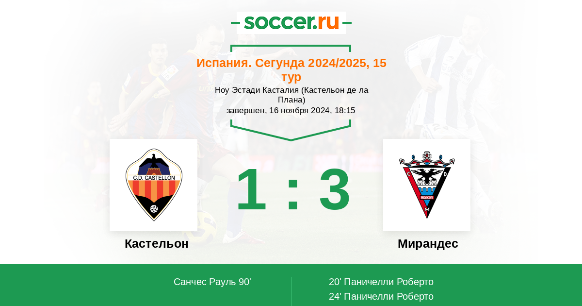 24' (0:2) Паничелли Хоакин (9) (Рейна Альберто (10))