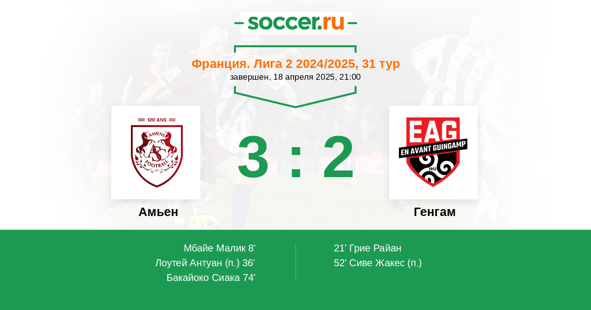 74' (3:2) Бакайоко Сиака (34) (Аит Будлал Абдельхамид (6))