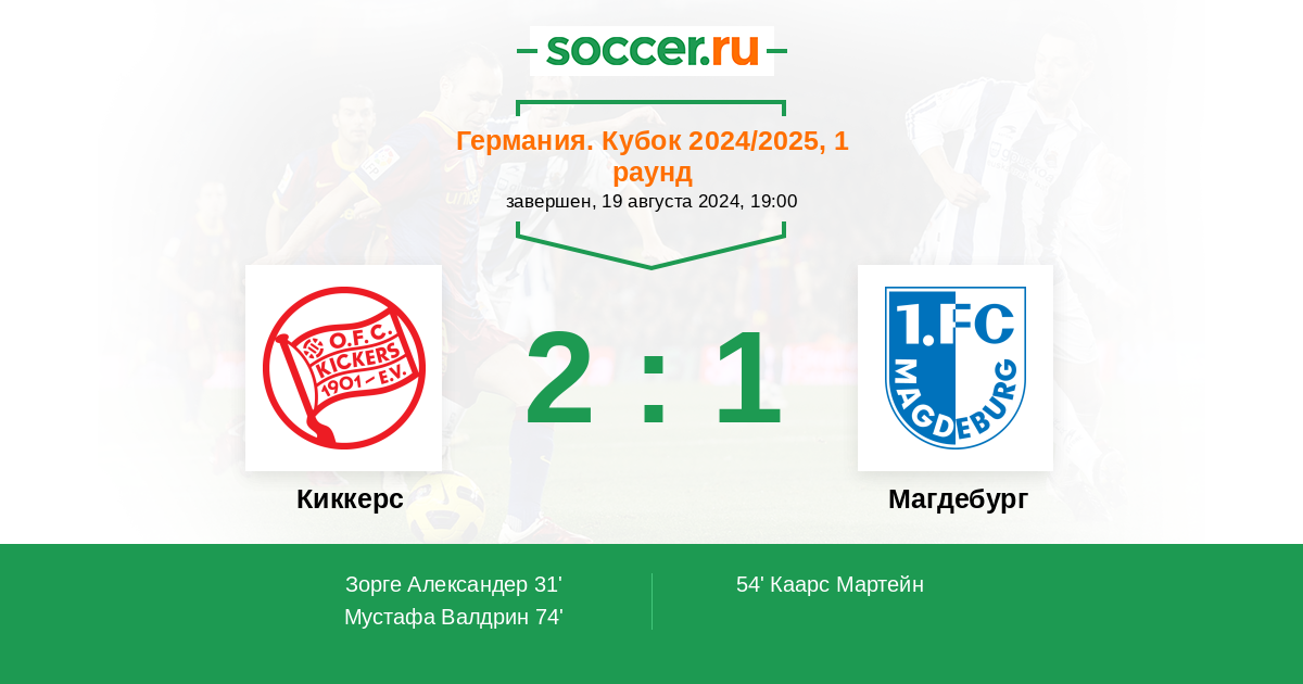 31' (1:0) Зорге Александер (5) (Вакс Марк (17))