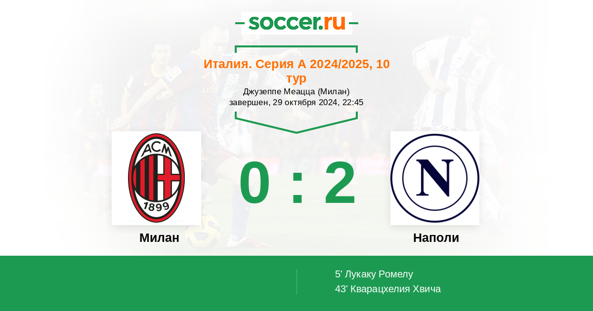 Отставание россонери от южан в таблице составляет уже восемь очков, и чтобы не выпасть раньше времени из борьбы за скудетто, команде Паулу Фонсеки необходимо обыгрывать конкурента на своем поле. Наполи желает укрепить лидерство.