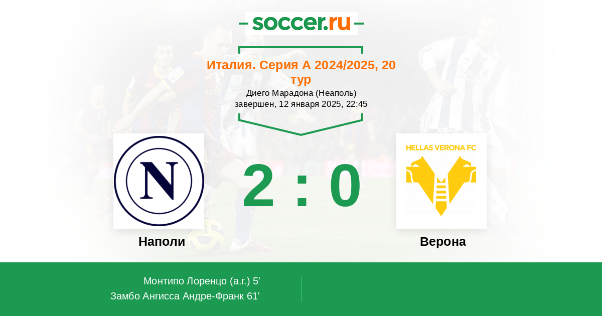 5' (1:0) Автогол Монтипо Лоренцо (1)