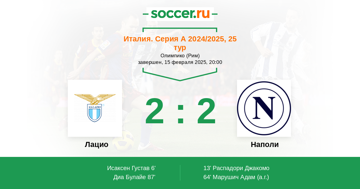 Стадион Олимпико (Рим), зрителей: 41500