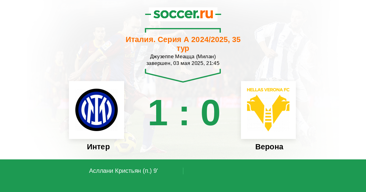 В первом круге Интер разобрал Верону в одну калитку камня на камне не оставив на обороне сегодняшних гостей, однако сейчас у миланцев иная ситуация, сезон заканчивается и силы на исходе, только что был тяжелейший матч с Барселоной, поэтому сейчас они сыграют максимально экономично и спокойно