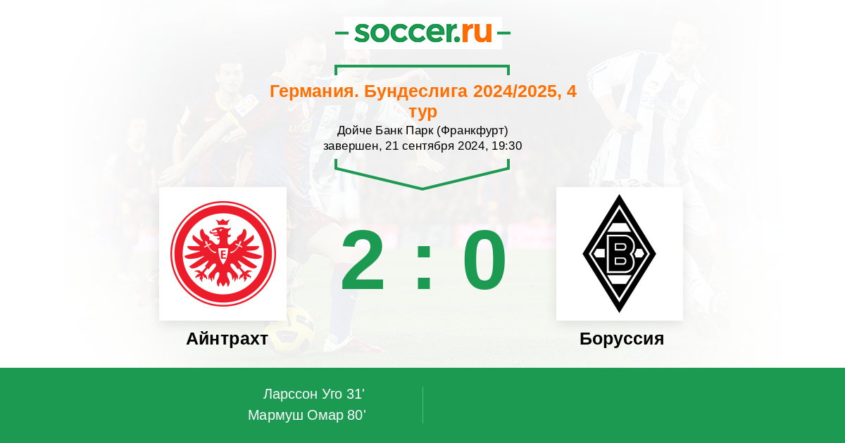 Айнтрахт - Боруссия ! Вроде бы рядовой не чем не примечательный матч, но это не так - команды между собой играют почти всегда принципиально и из 10 последних очных встреч ОЗ - было в 9.