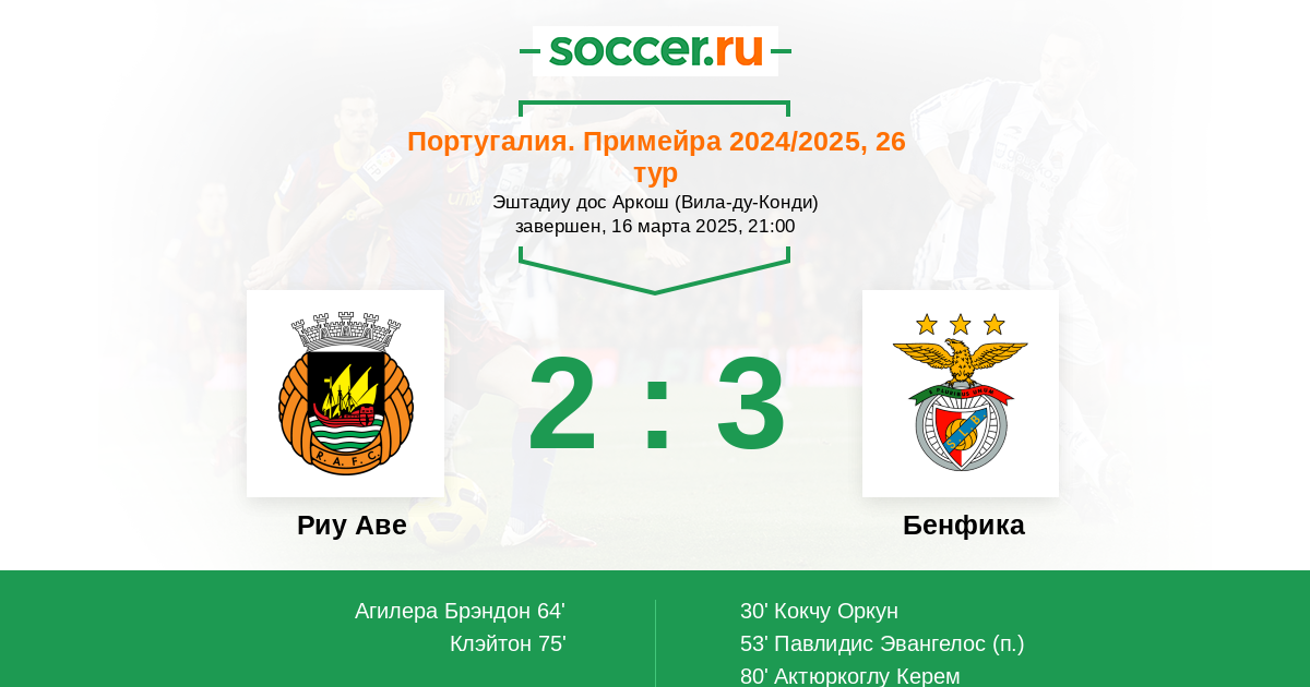 Риу Аве - Бенфика ! Набравшие хороший ход гости , являются в этом матче фаворитами и наверняка постараются увезти 3 очка домой . Хозяева находящиеся в середине тур . таблице - могут играть спокойно , без нервов . ОЗ .