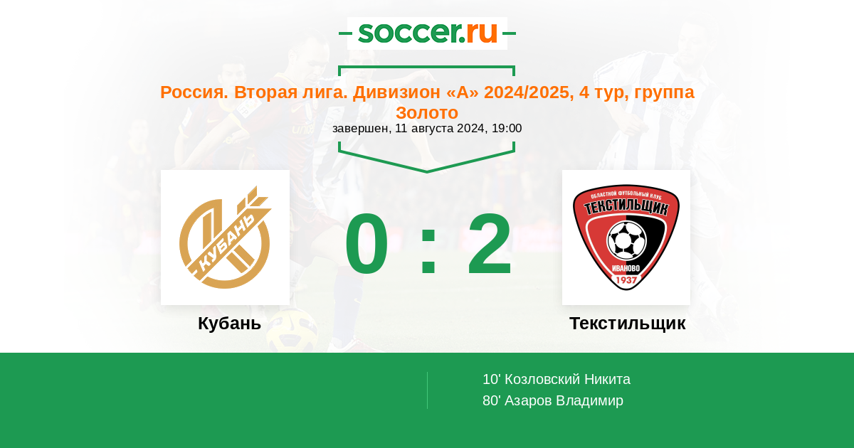 Матчи Россия. Вторая лига. Дивизион «А» 2024/2025