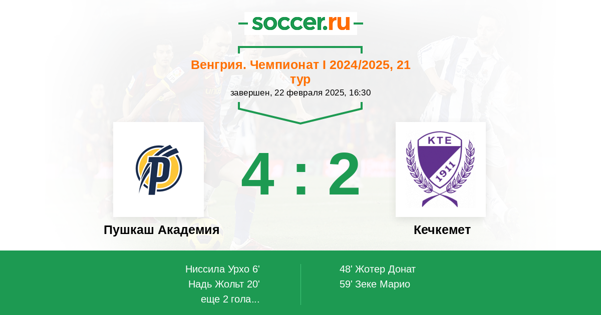 20' (2:0) Надь Жольт (25) (Ниссила Урхо (16))