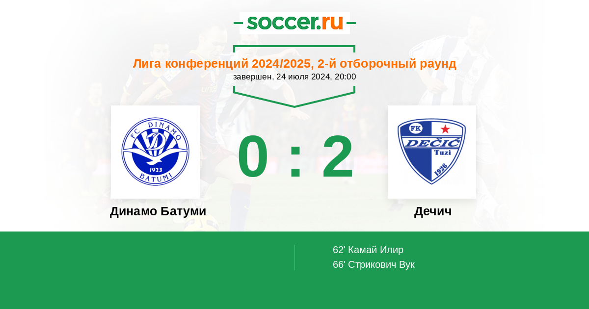 66' (0:2) Стрикович Вук (77)