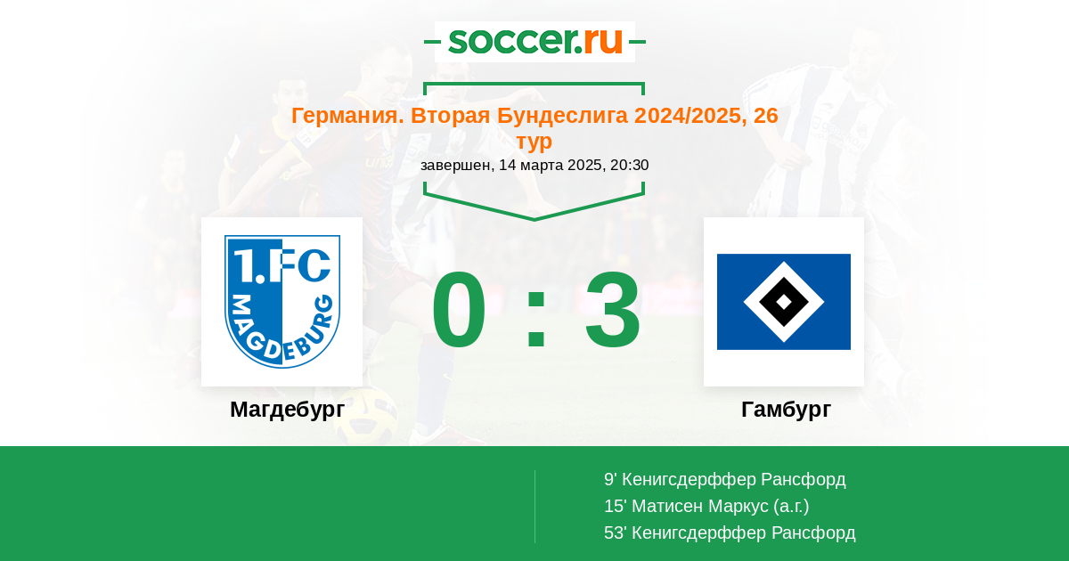 9' (0:1) Кенигсдерффер Рансфорд (11)