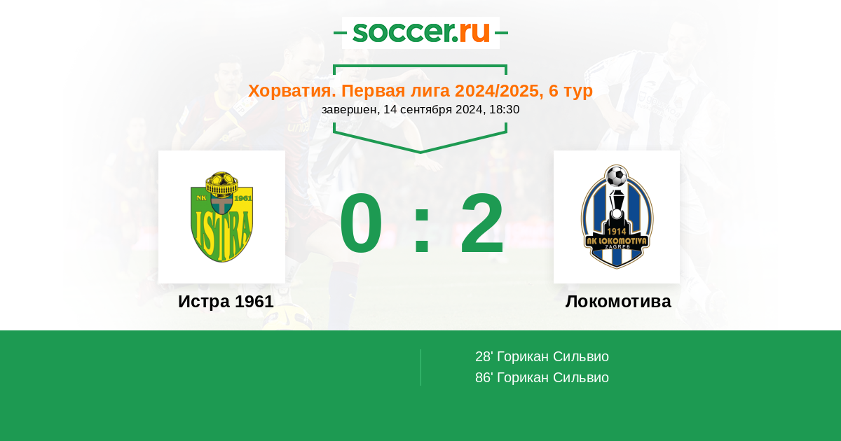 28' (0:1) Горикан Сильвио (7) (Чоп Дуйе (9))