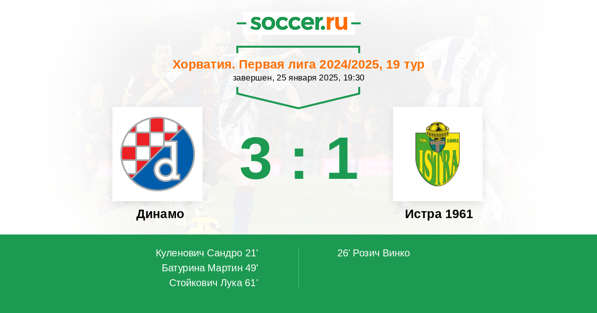 21' (1:0) Куленович Сандро (17) (Франьич Бартол (38))