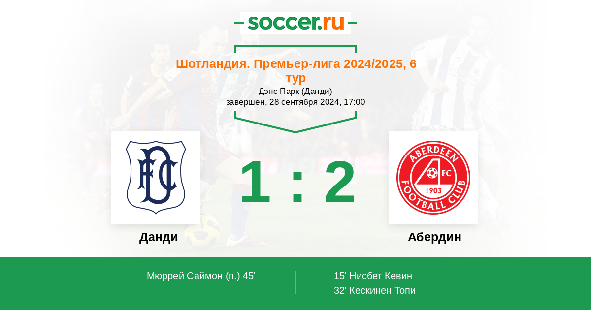 32' (0:2) Кескинен Топи (81) (Шинни Грэм (4))