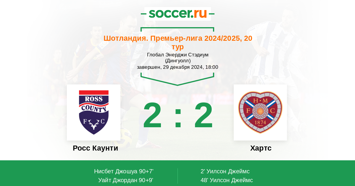 2' (0:1) Уилсон Джеймс (21) (Бойс Лиам (27))