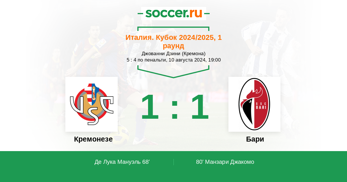 68' (1:0) Де Лука Мануэль (9) (Кастаньетти Микеле (19))