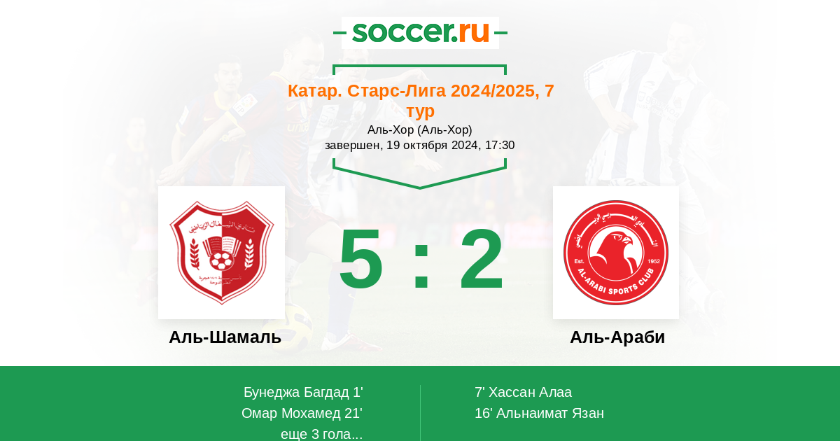21' (2:2) Омар Мохамед (7) (Бунеджа Багдад (11))