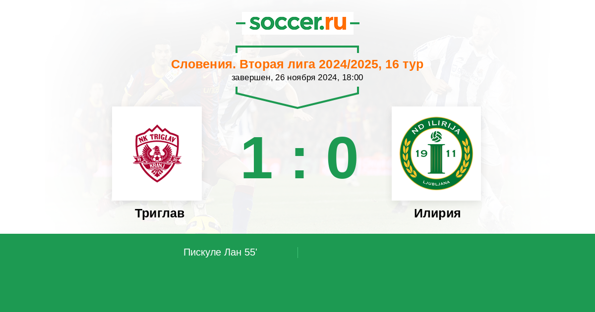 Хозяйская команда выглядит посильнее своих сегодняшних соперников, имеет больше шансов выиграть у Илирии на своём поле, однако с большой вероятностью победа не придёт к ней легко, но хотя бы один гол до перерыва Триглав забьёт