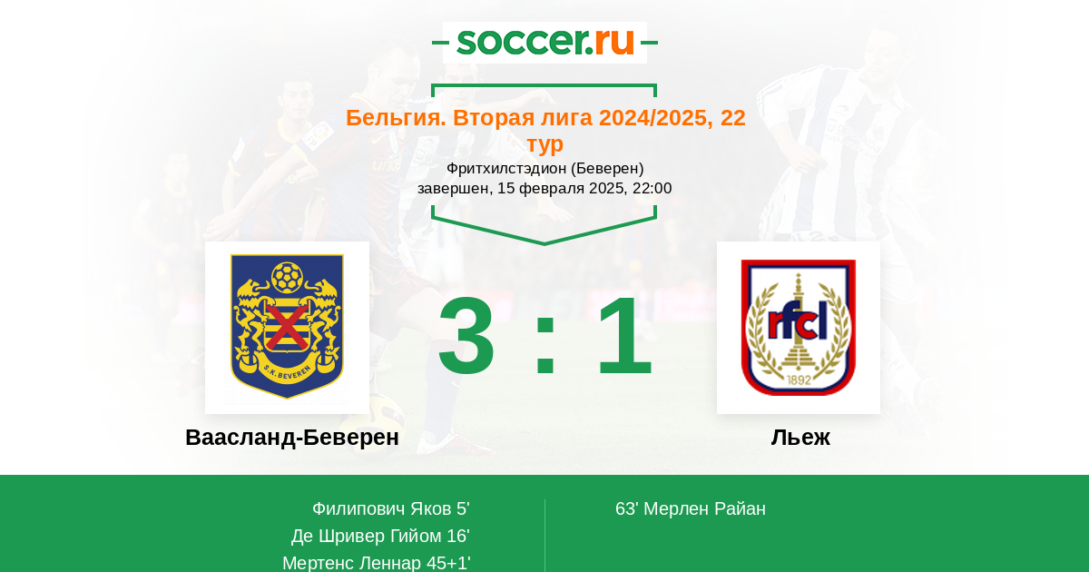 16' (2:0) Де Шривер Гийом (23) (Абрахамс Курт (34))