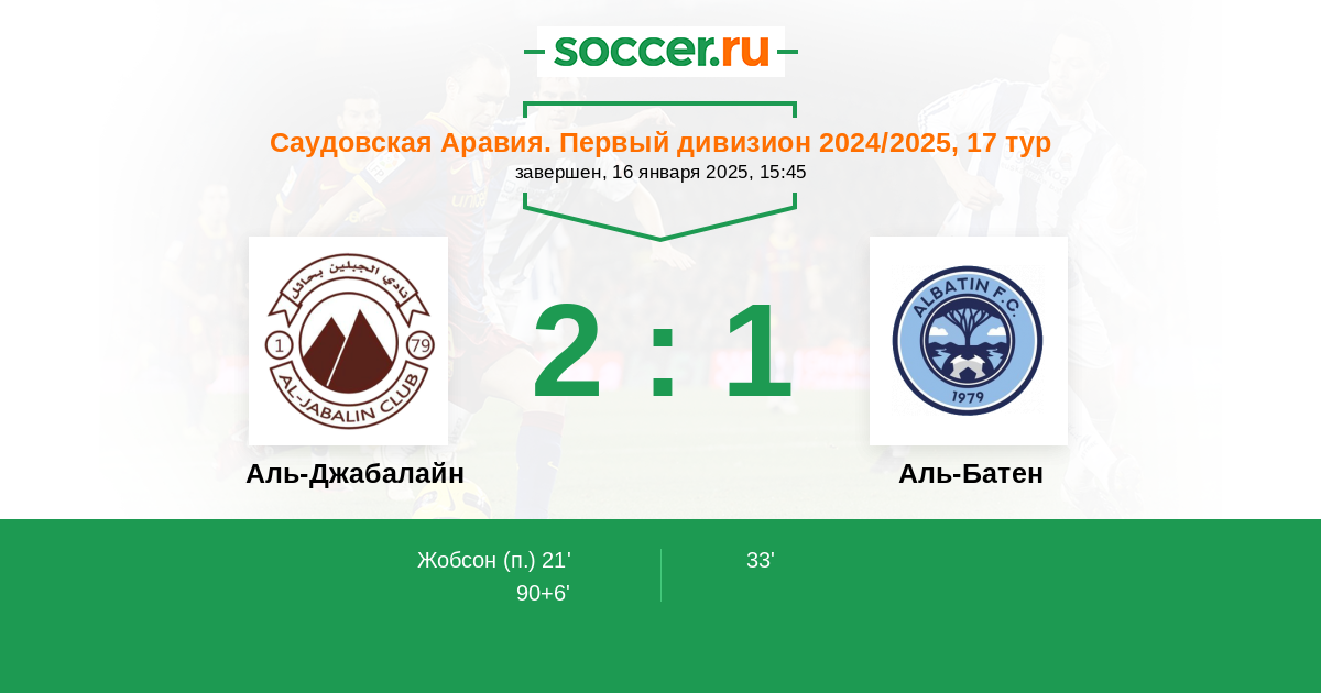 21' (1:0) Жобсон
