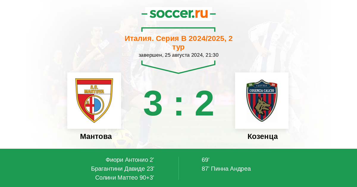 23' (2:0) Брагантини Давиде (30) (Фиори Антонио (11))
