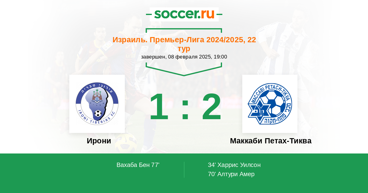 70' (0:2) Алтури Амер (77) (Иегошуа Нив (28))