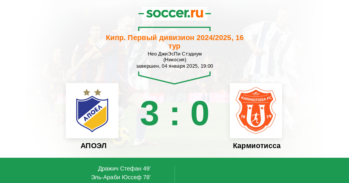 Матчи Кипр. Первый дивизион 2024/2025