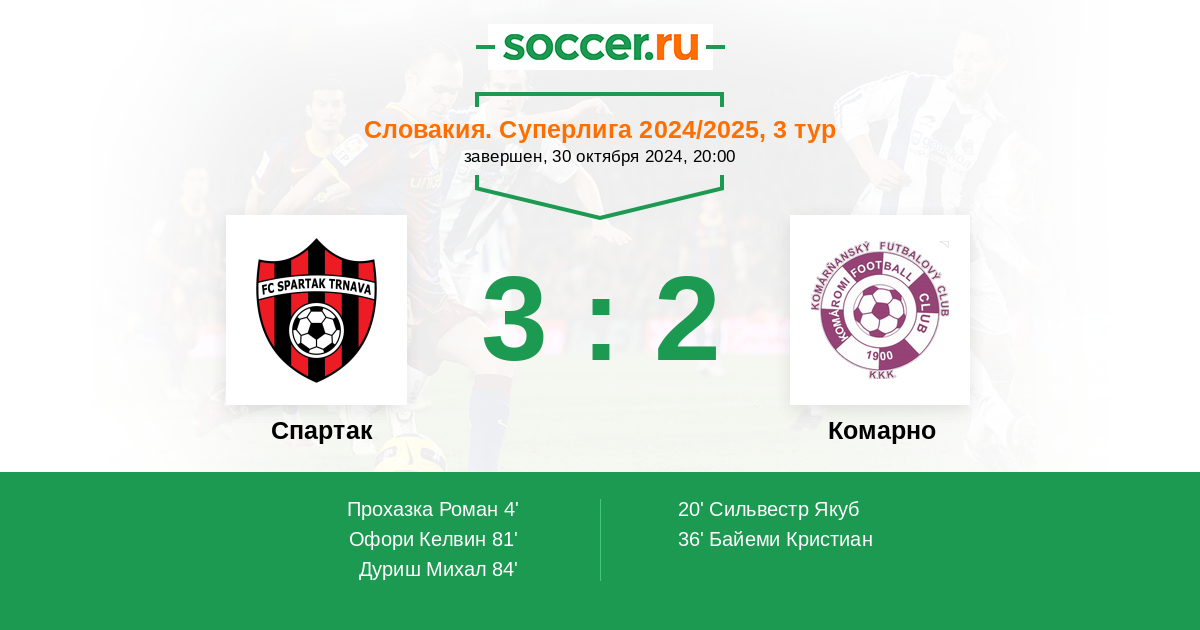 81' (2:2) Офори Келвин (97) (Дуриш Михал (57))