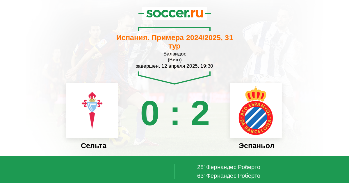 Замена62' Аспас Яго (10) уходит с поля, Лопес Фер (28) вышел на поле