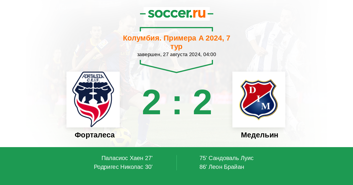 27' (1:0) Паласиос Хаен (18) (Инестроза Сесар (17))
