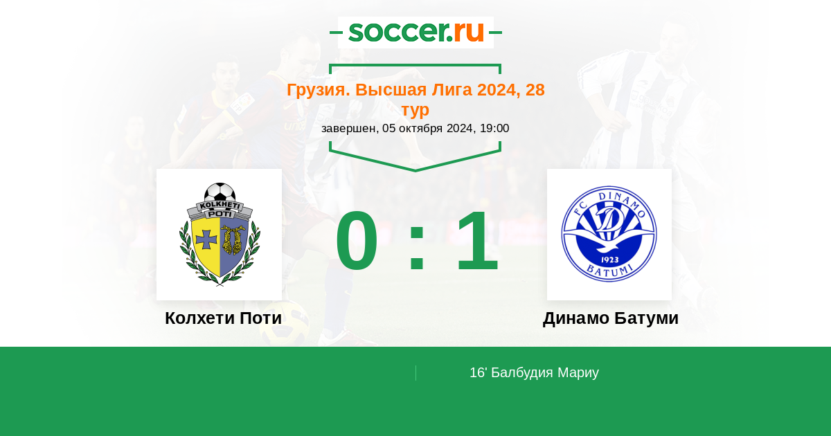 16' (0:1) Балбудия Мариу (8) (Читеишвили Реваз (35))