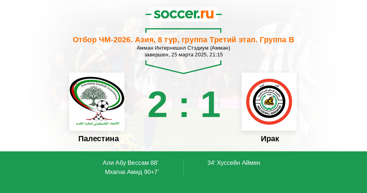 34' (0:1) Хуссейн Аймен (18) (Баеш Ибрахим (8))