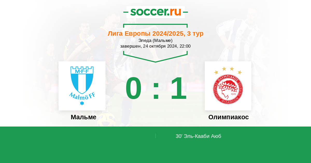 30' (0:1) Эль-Кааби Аюб (9) (Мартинш Желсон (10))