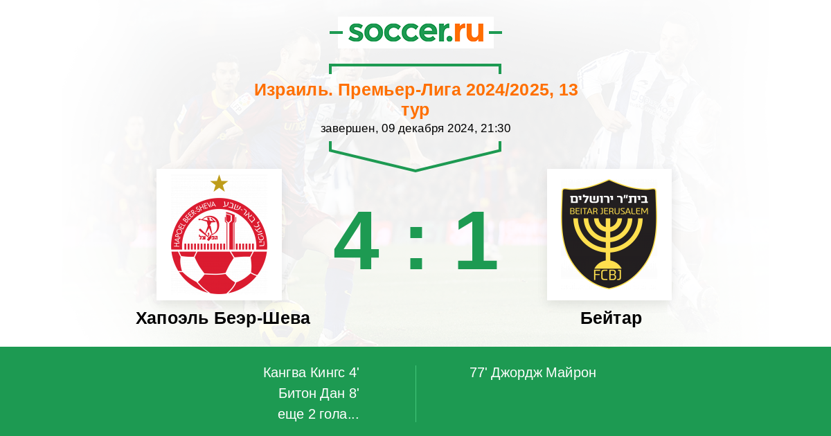8' (2:0) Битон Дан (10) (Мизрахи Гай (2))