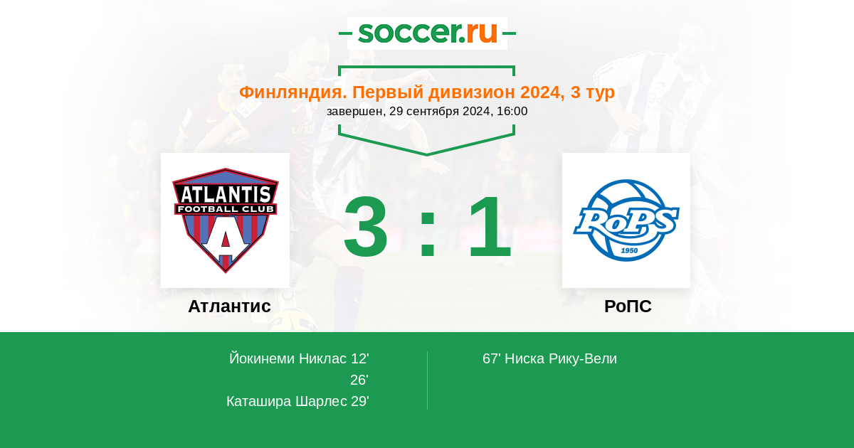 29' (3:0) Каташира Шарлес (18)