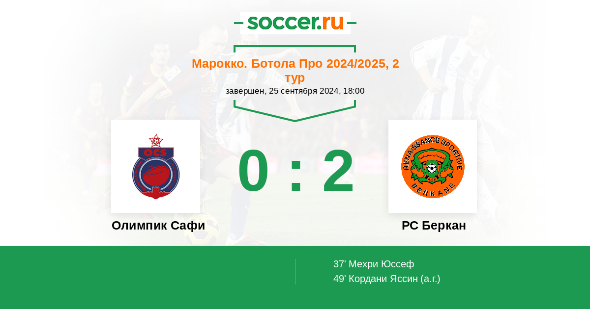 49' (0:2) Автогол Кордани Яссин (99)