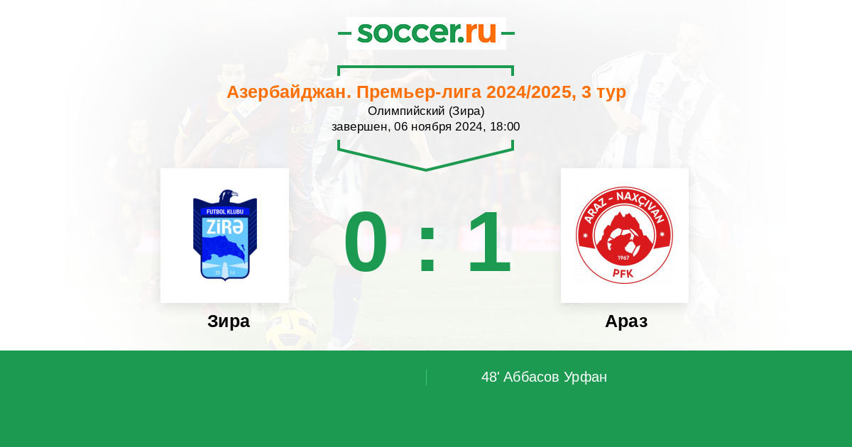 48' (0:1) Аббасов Урфан (34) (Паро Иссуф (17))
