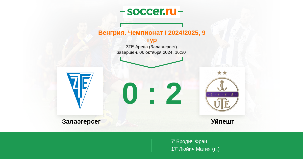 7' (0:1) Бродич Фран (9) (Беше Барнабас (33))