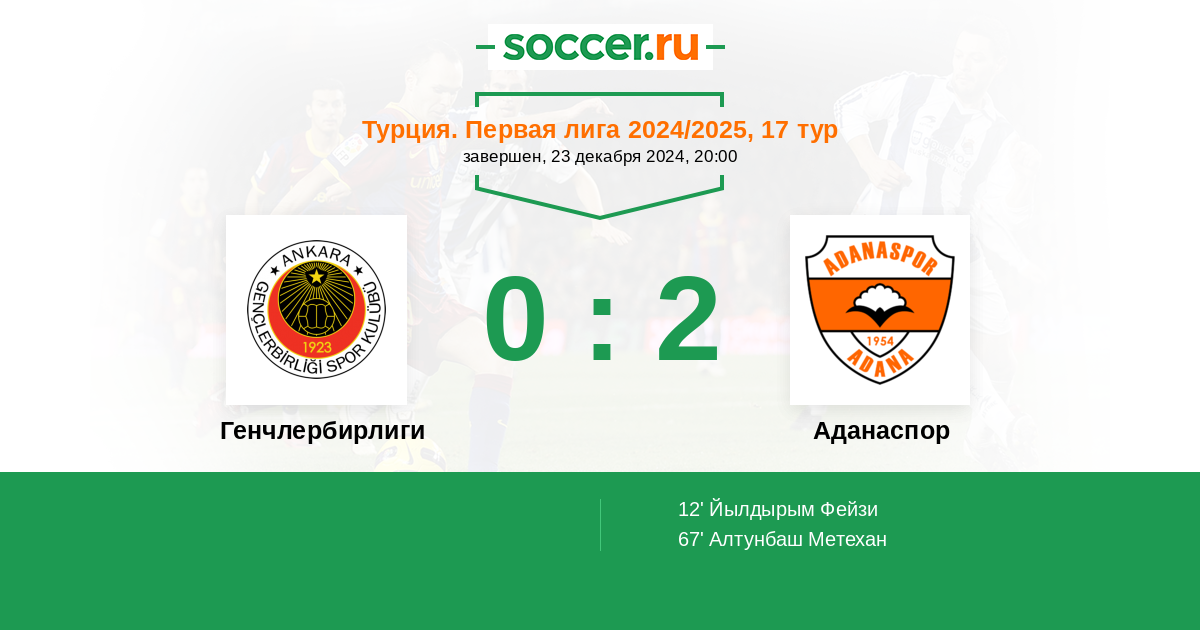 12' (0:1) Йылдырым Фейзи (26) (Алпсой Харун (23))