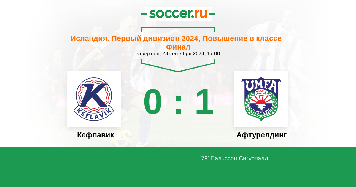 78' (0:1) Пальссон Сигурпалл