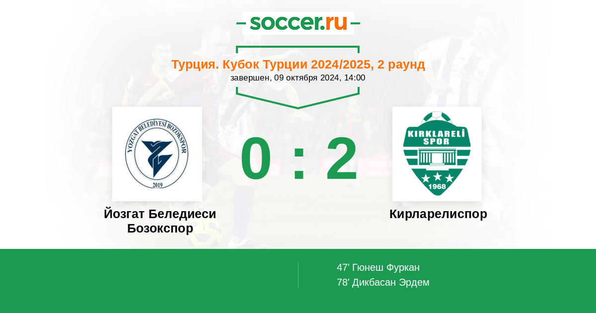47' (0:1) Гюнеш Фуркан (11)