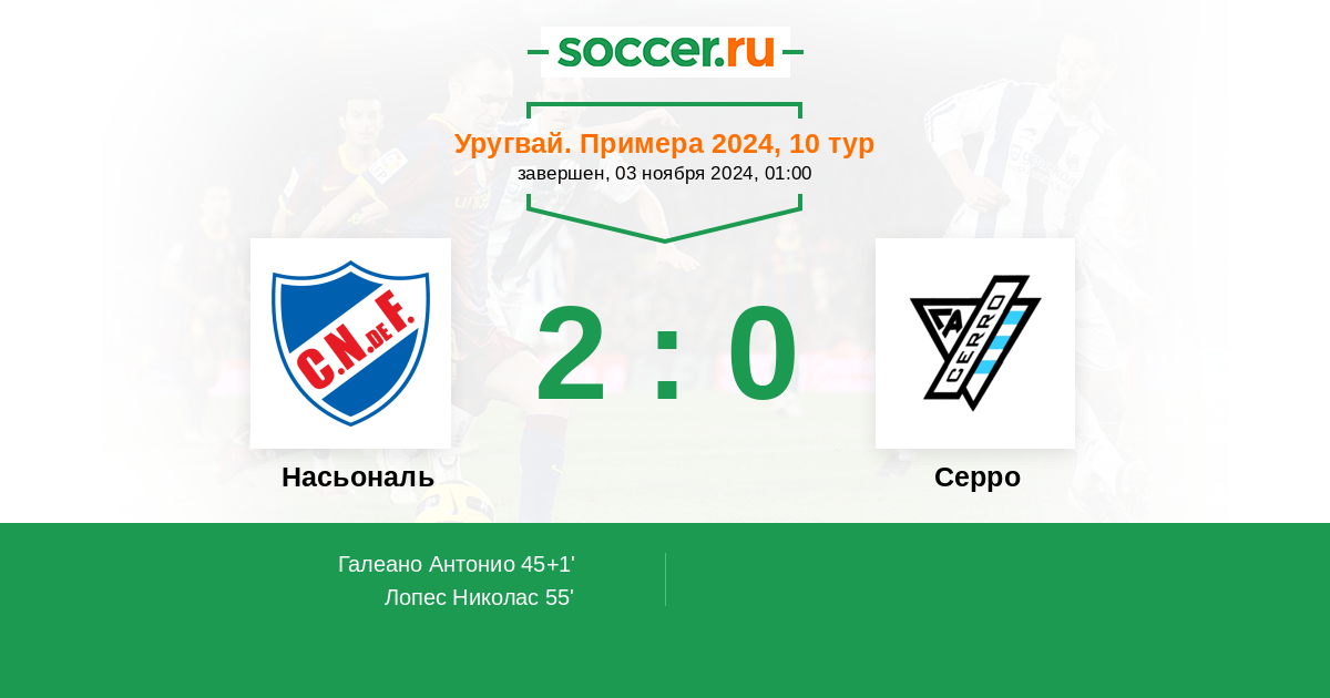 55' (2:0) Лопес Николас (70)