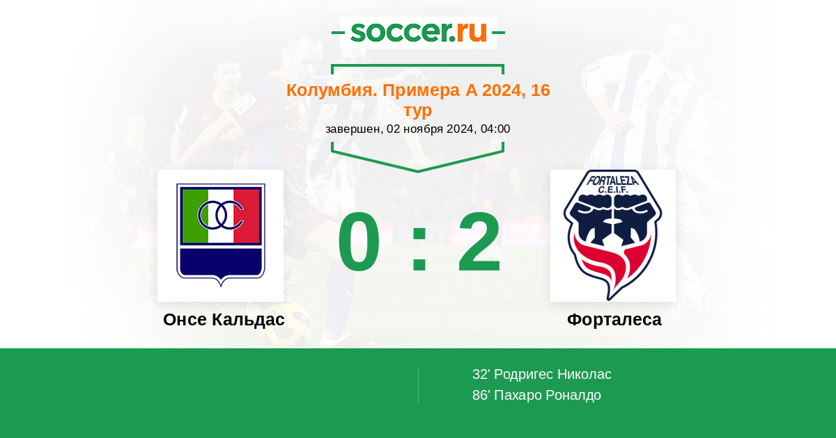 86' (0:2) Пахаро Роналдо (13)