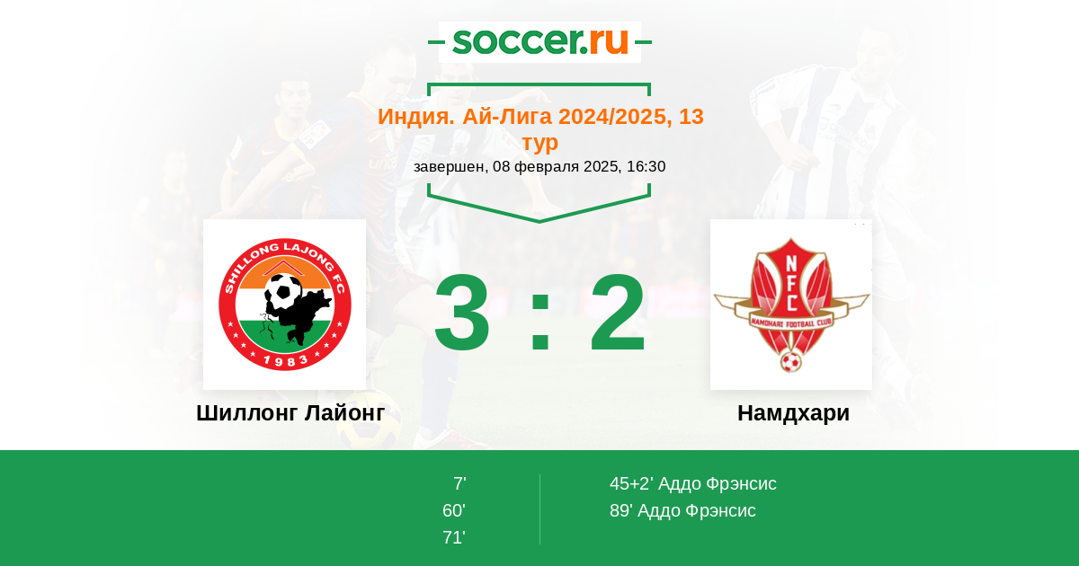 45+2' (1:1) Аддо Фрэнсис (25) (Сингх Симранжит)