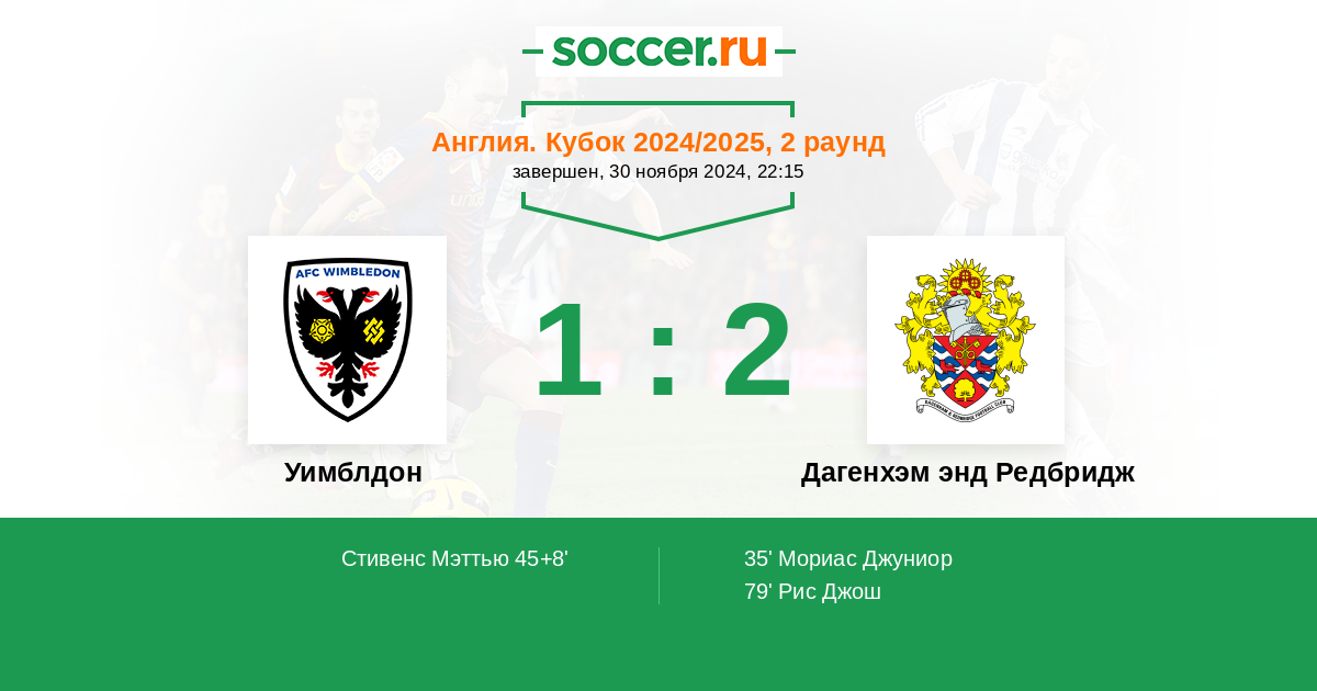 45+8' (1:1) Стивенс Мэттью (14) (Фурлонг Джеймс (3))