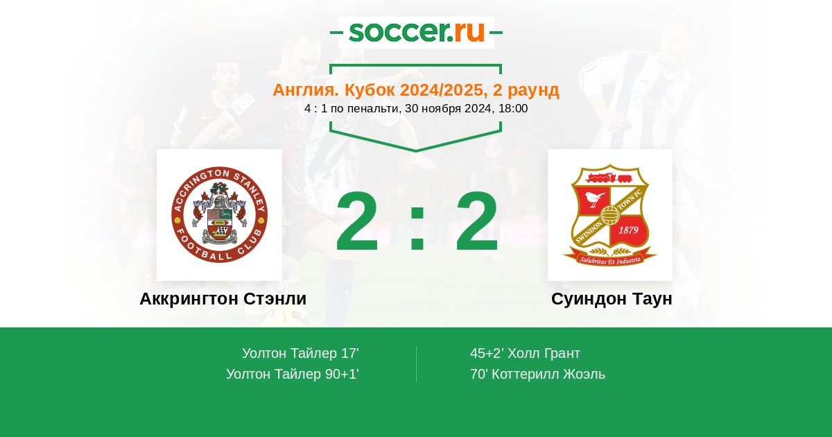 Гол90+1' (2:2) Уолтон Тайлер (23)