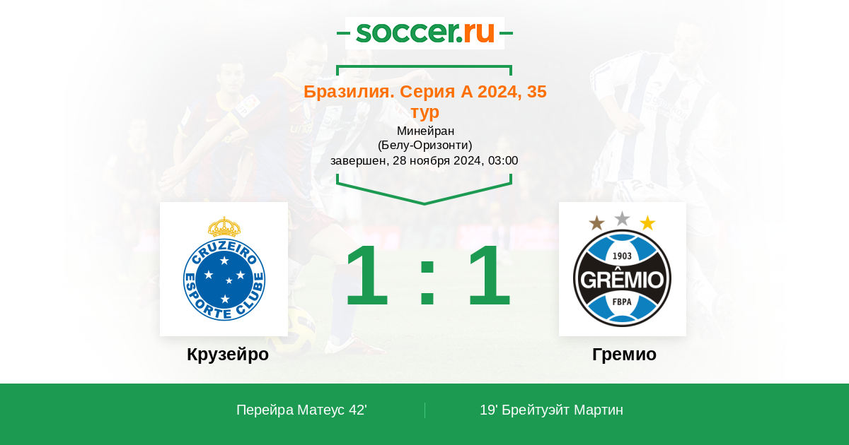 42' (1:1) Перейра Матеус (10) (Фонсека Габриэль Верон (30))